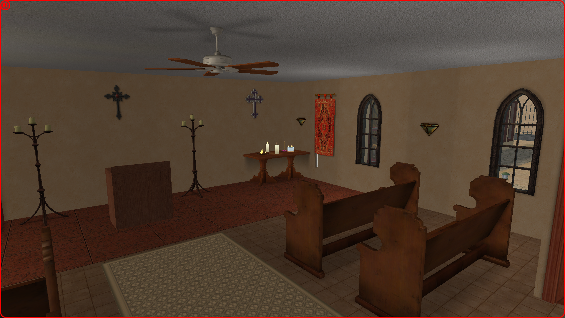 The chapel is based partly on some pictures I saw on Pinterest and partly on Vibes (I know basically nothing about denominations of Christianity and their decorating styles).